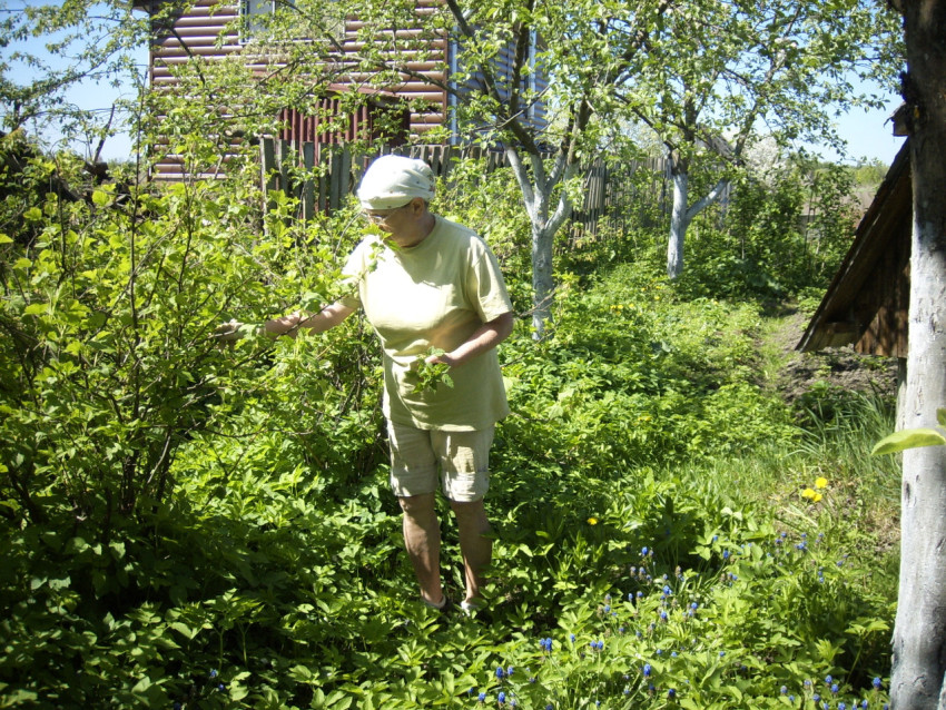 Деревенская женщина в саду в солнечный день