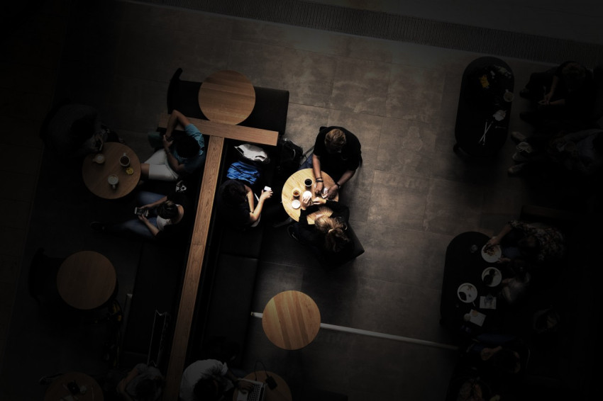 Вид сверху на столики в кафе