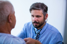 Девушка врач рассматривает рентгеновские снимки грудной клетки