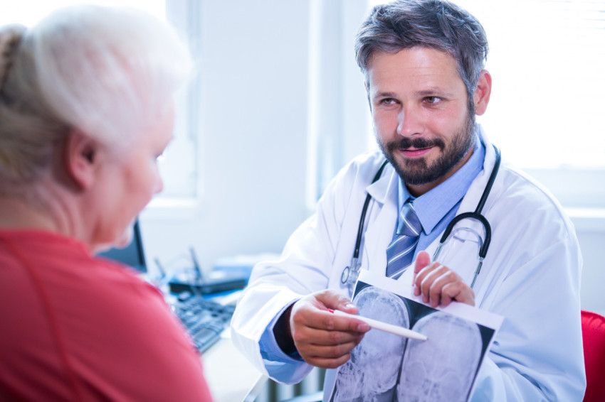 Врач показывает снимки черепа пациенту