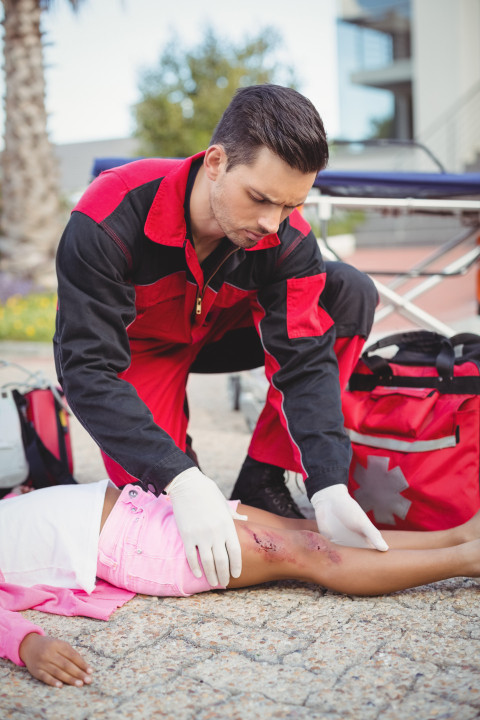 Врач скорой медицинской помощи оказывает первую помощь