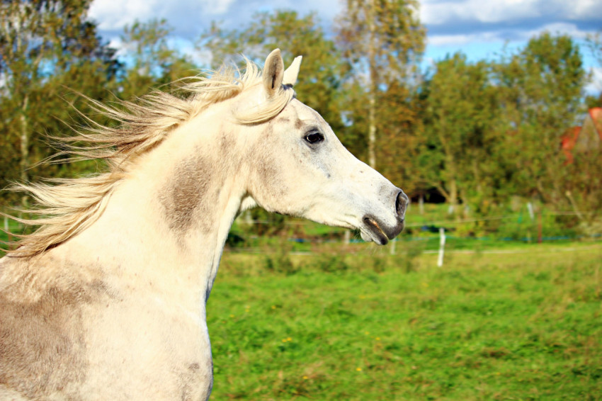 Белая лошадь крупным планом