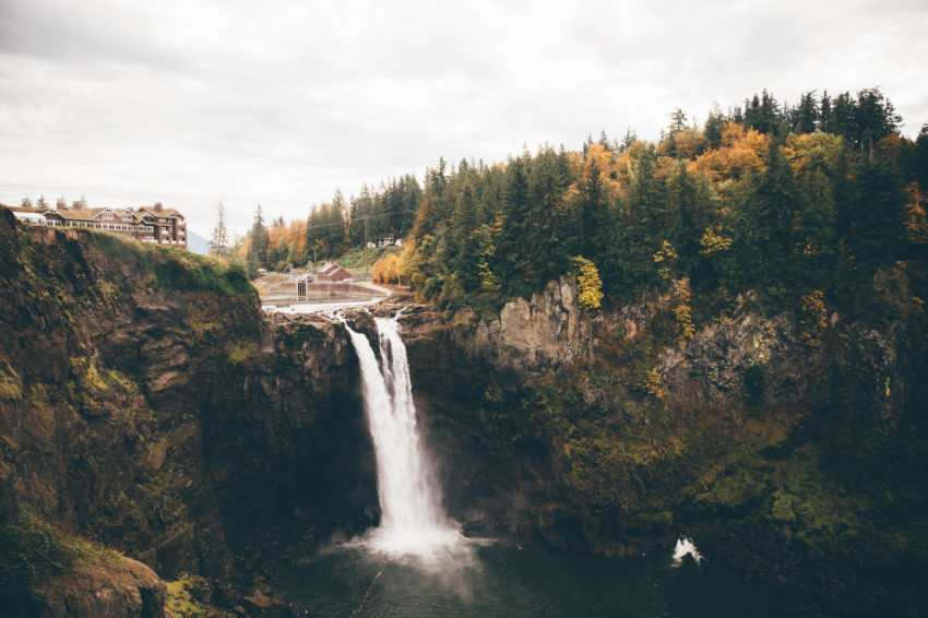 Красивый водопад осенью