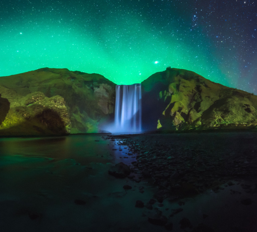 Водопад на фоне северного сияния
