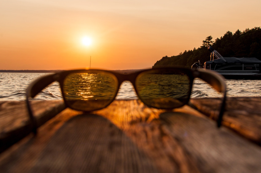 Солнцезащитные очки на закате солнца