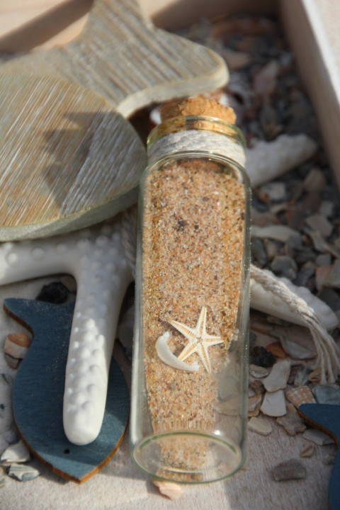 Бутылочка с запиской с песком и ракушками