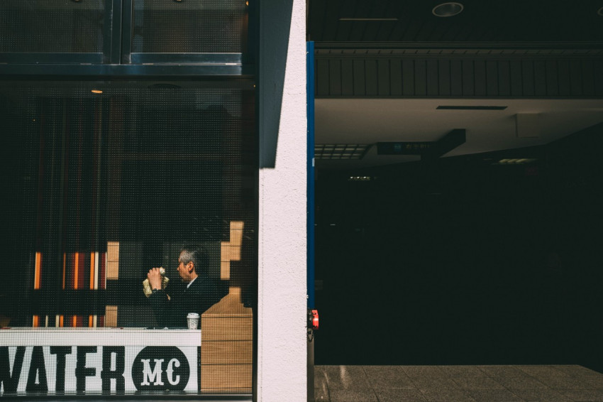 Деловой человек на обеде в кафе