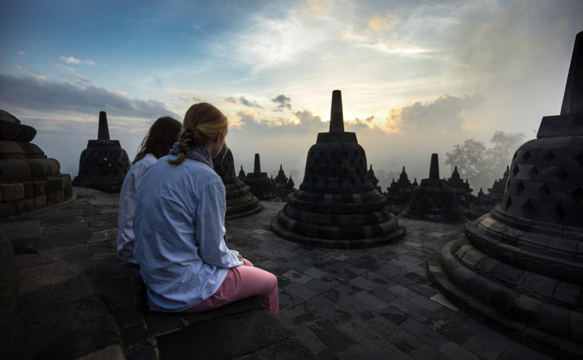 Девушки в храме Боробудур