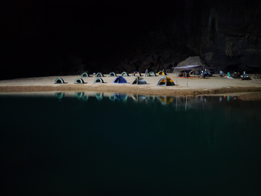 Палатки в пещере Шондонг во Вьетнаме
