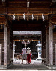 Молодая пара спиной в японском храме