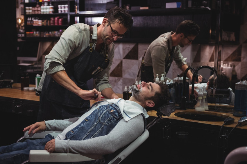 Бритье бороды в барбершопе