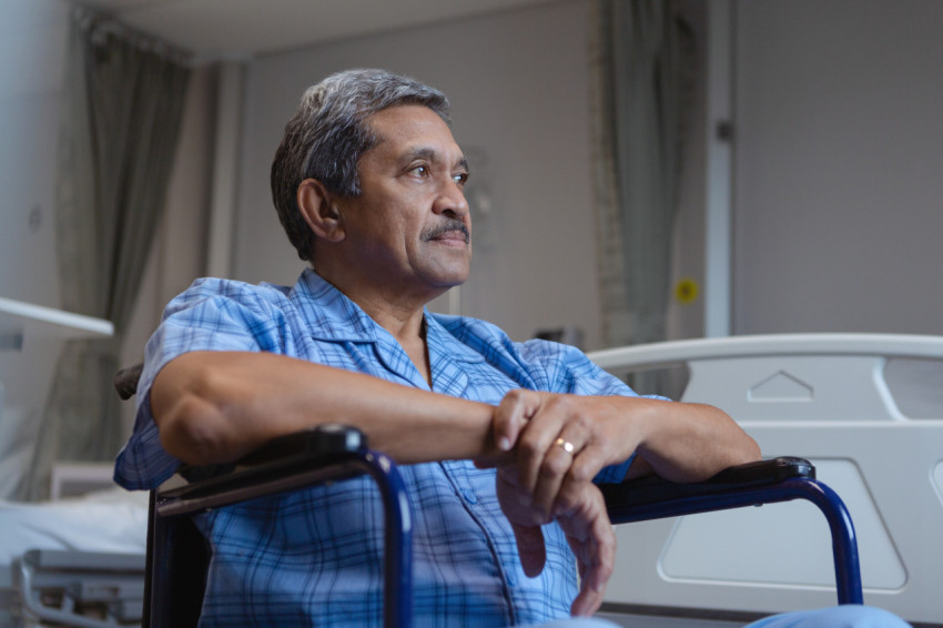 Красивый мужчина в куртке с бородой и сигаретой в руке на темном фоне