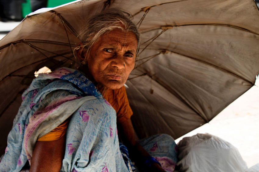 Пожилая женщина под зонтом