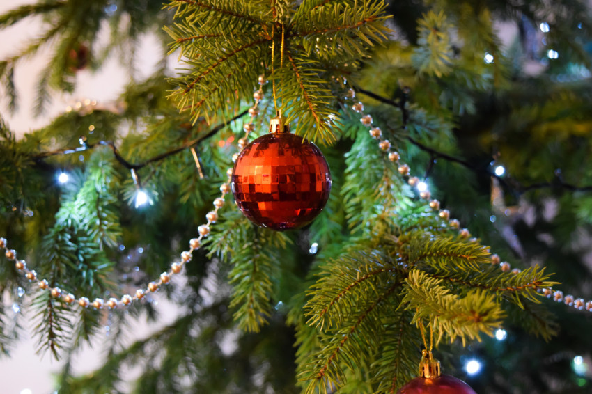 Ребенок с новогодним подарком у елки