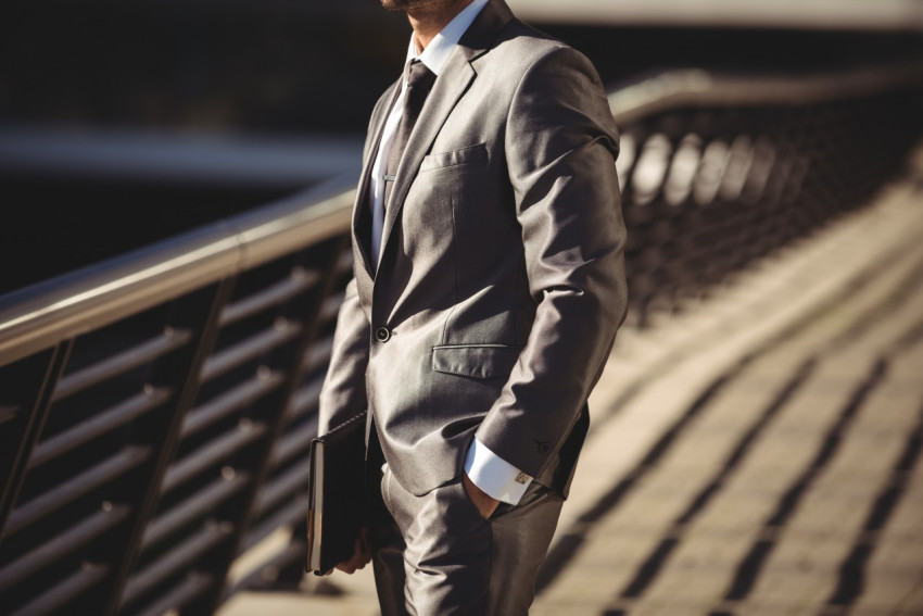 Человек в деловом костюме с рукой в кармане