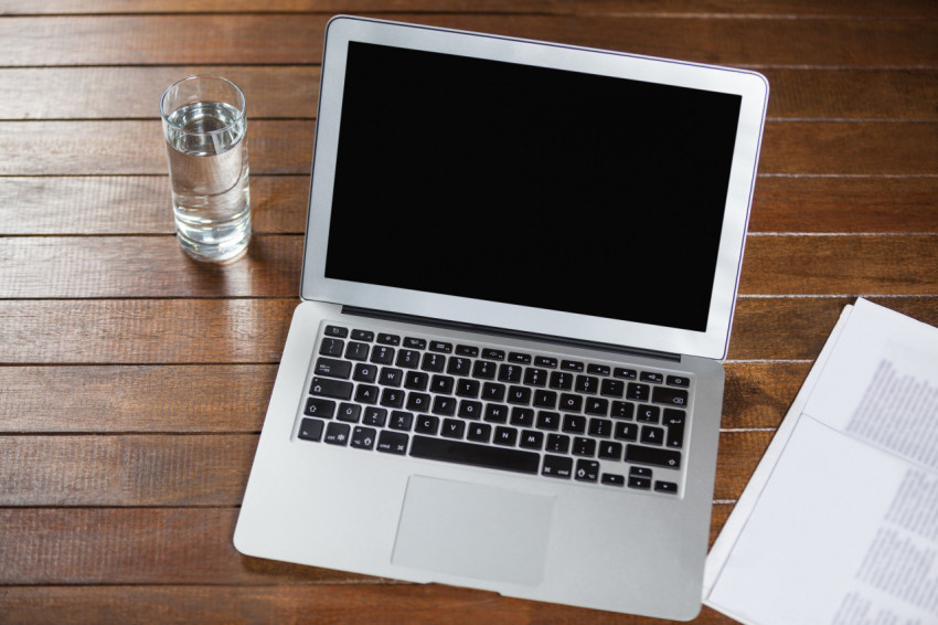 Ноутбук, смартфон, ручка и ежедневник на столе