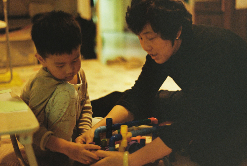 Родитель с ребенком собирают вместе конструктор