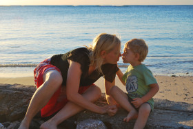 Мама с сыном на пляже