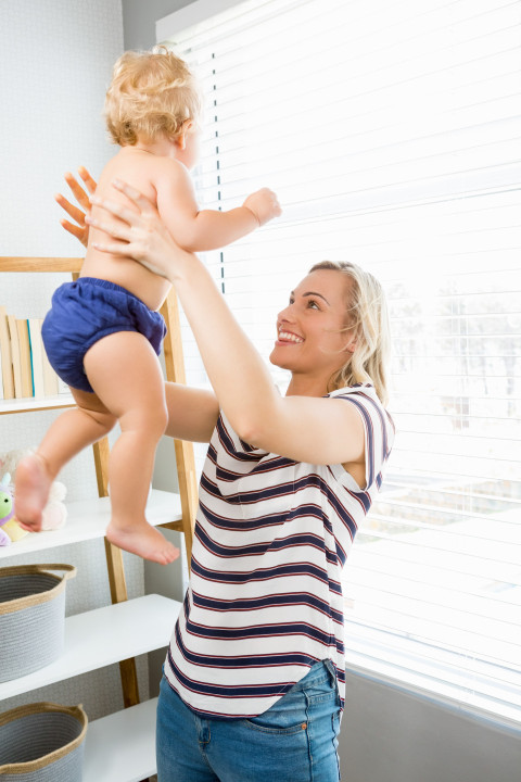 Фотосессия девушки у окна на подоконнике с гирляндой с кружкой в руках