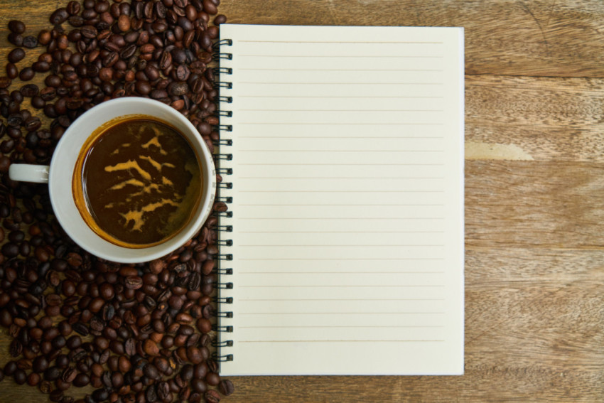 Чашка кофе на фоне с человеком со смартфоном в руках