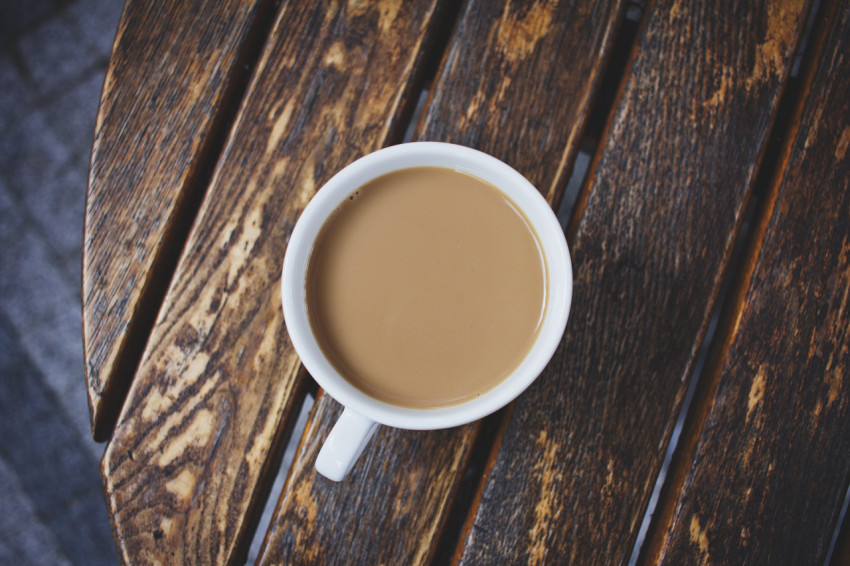 Чашка кофе с молоком на деревянном столе