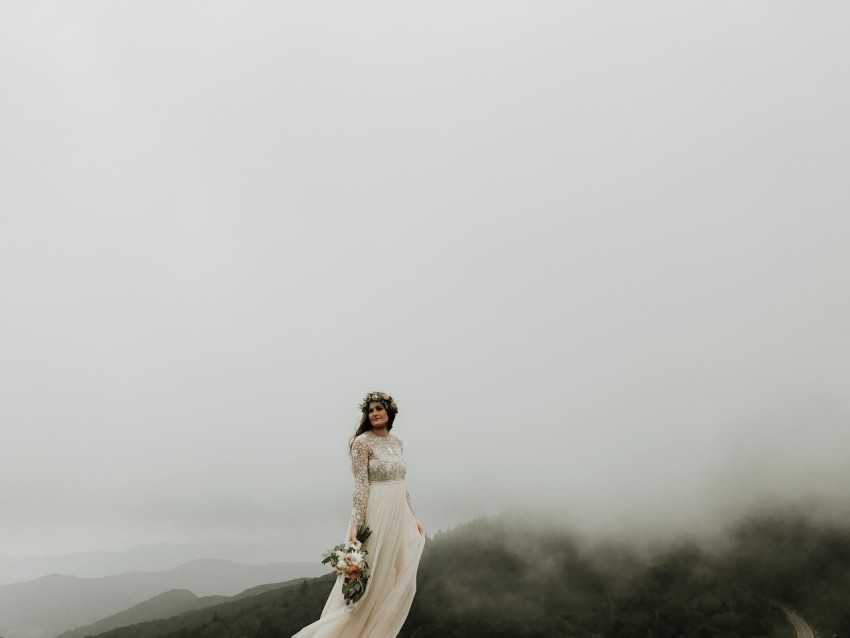Невеста в горах в облаках