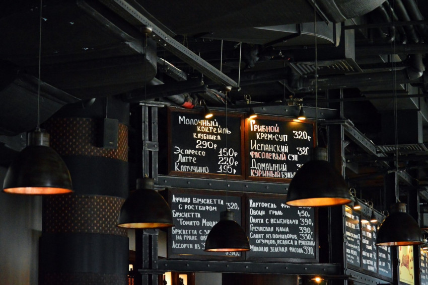 Меню кафе