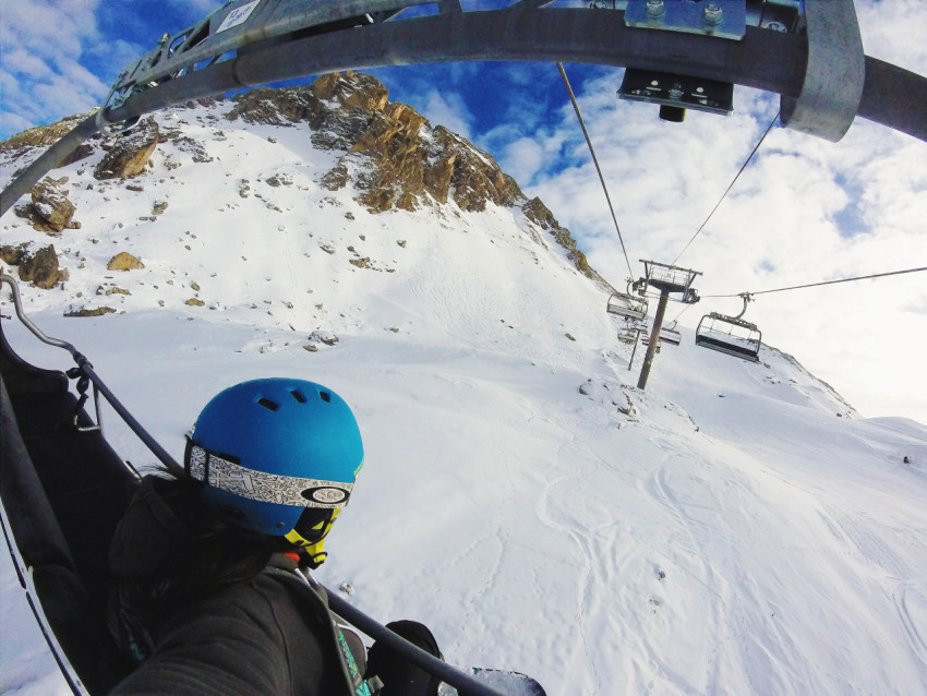 Сноубордист на подъемнике