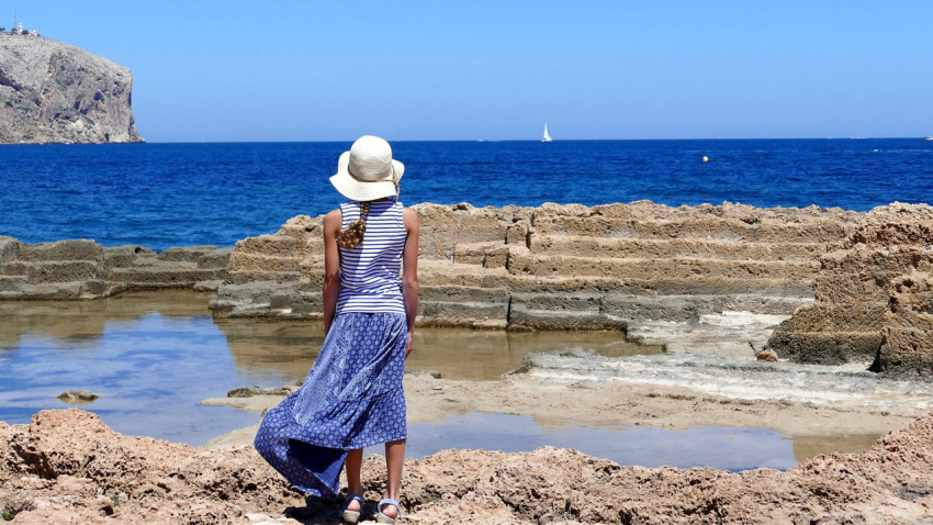 Девушка в солнечных очках у кирпичной стены в черном топе и красных штанах