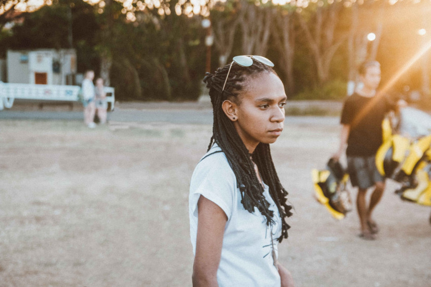 Девушка сидит на кухне на барном стуле с книгой в руках