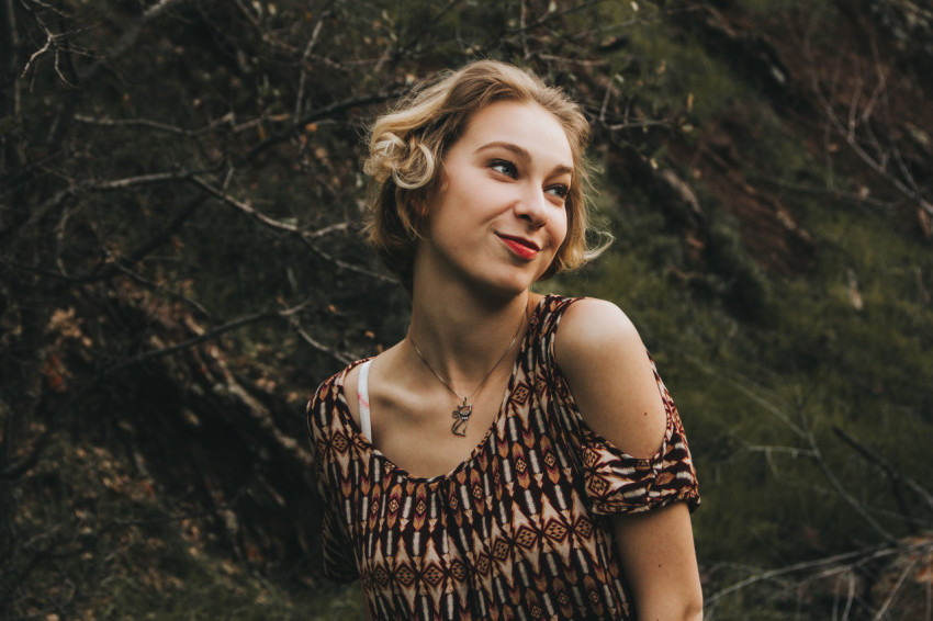 Девушка в рубашке обнажила одно плечо