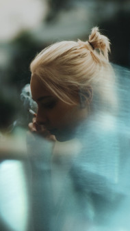 Парень в зеленой толстовке в кепке и капюшоне на фоне заснеженных гор