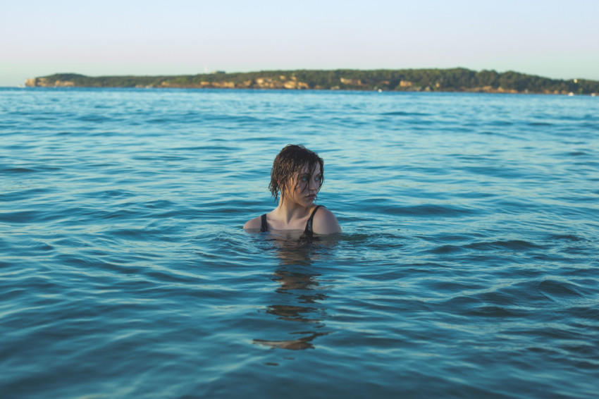 Девушка купается в воде