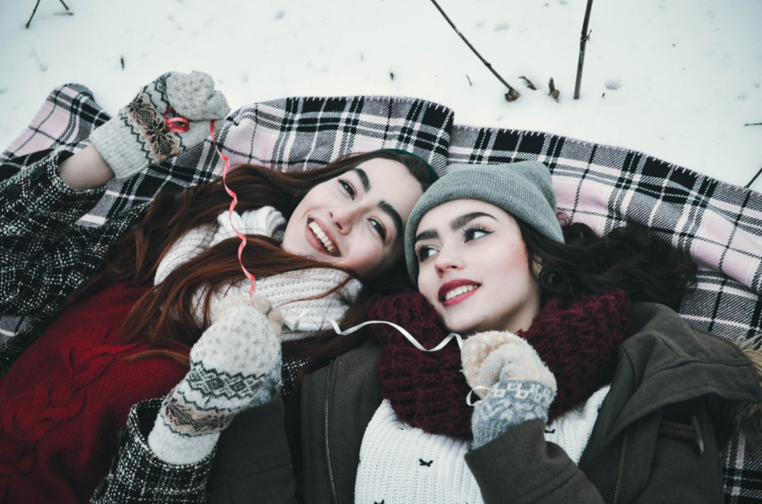 people woman люди девушки фотосессия подружек подружки подруги лежат на пледе на снегу girls womenПохожие фото