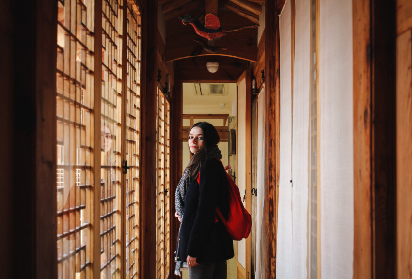 Девушка в коридоре в японском стиле
