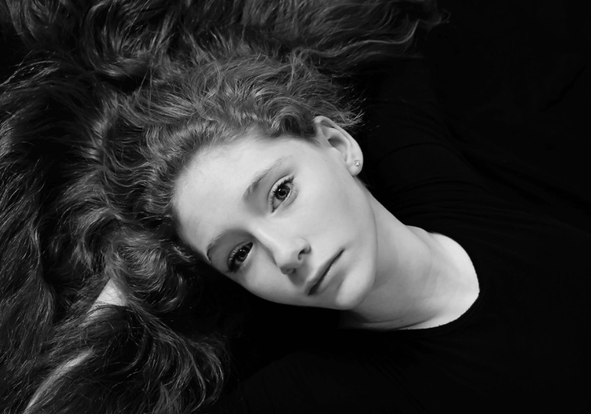 Черно белое портретное фото девушки