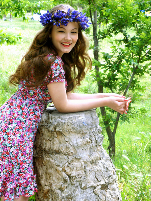 Девушка лежит на траве портрет