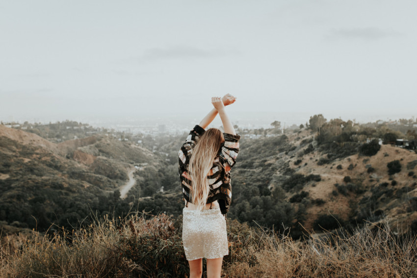 Девушка сидит на постели с приоткрытым плечом и грудью