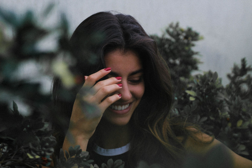 Девушка на темно-зеленом фоне