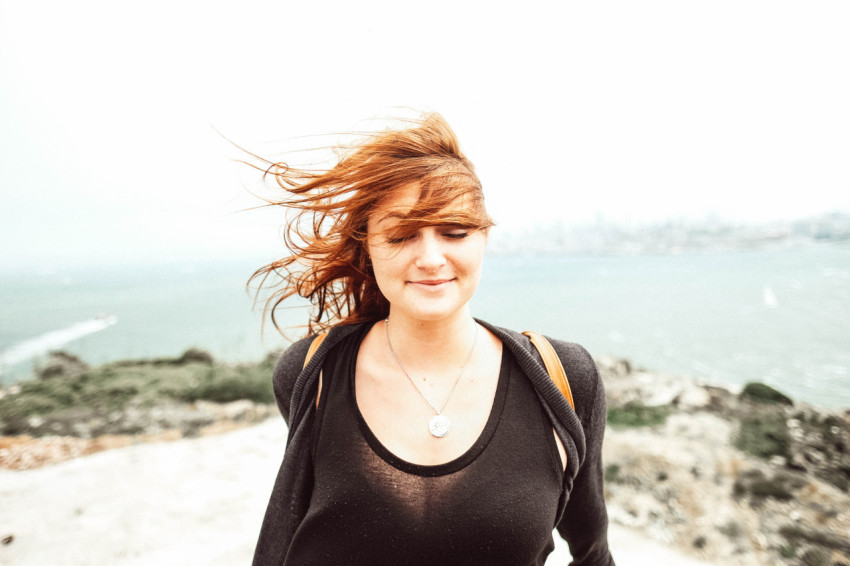 Девушка с белыми наушниками на шее
