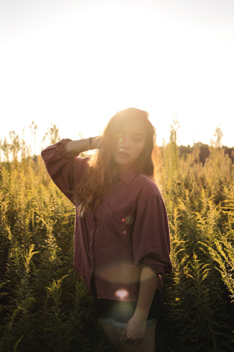Девушка в красной легкой кофте и коротких шортах стоит у спортивной площидки