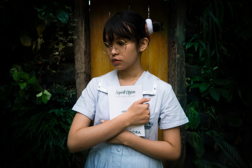 Портретное фото девушки с венком из красных ягод в лучах закатного солнца