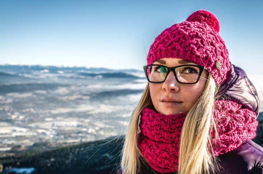 Девушка сидит спиной и любуется пейзажем заката и моря