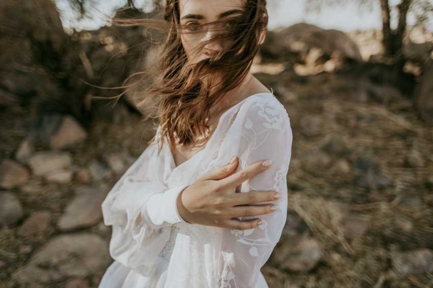 Девушка на природе в белом платье
