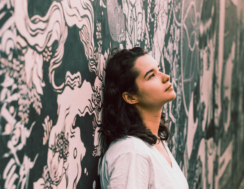 Девушка прислонилась к стене