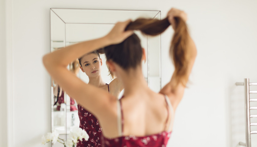 женщина люди девушка девушки people girl woman длинные волосы красивая зеркало собирается одевается делает прическуПохожие фото