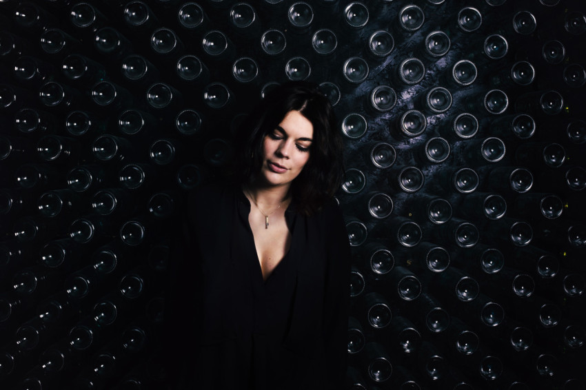 Девушка в черном на темном фоне