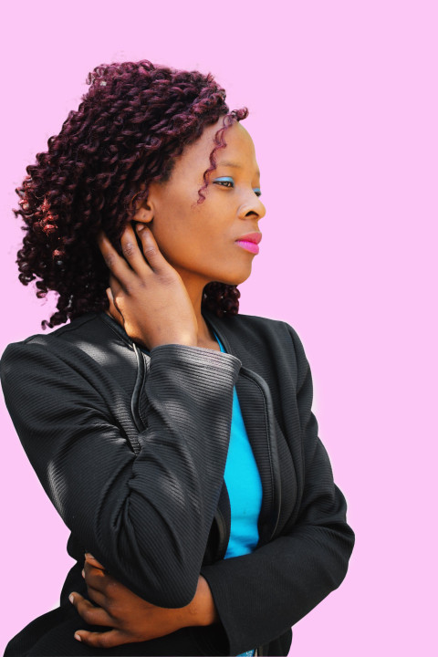 Девушка блондинка спиной раскинув руки в стороны на природе в поле на холме