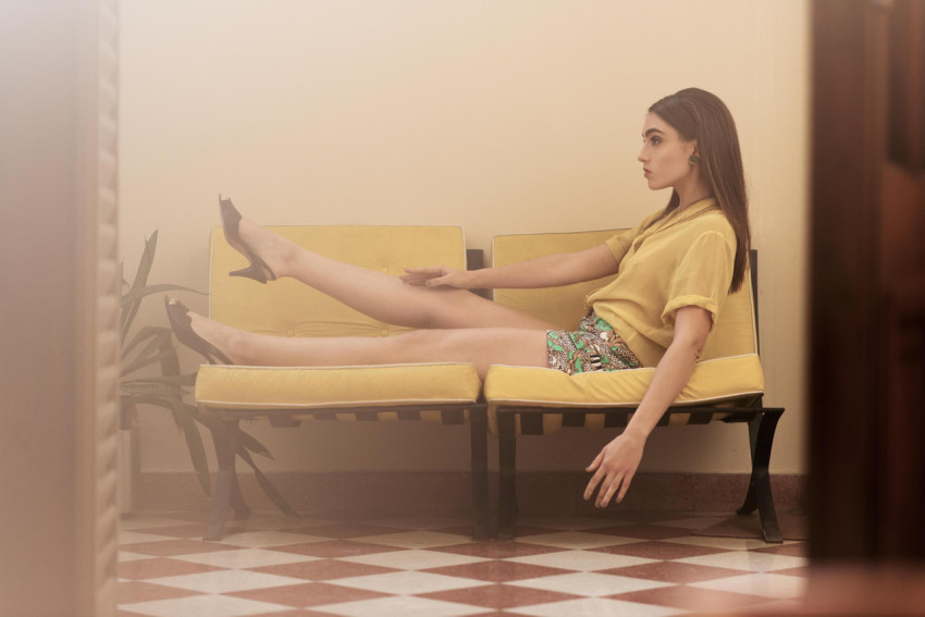 Девушка на желтом диванчике