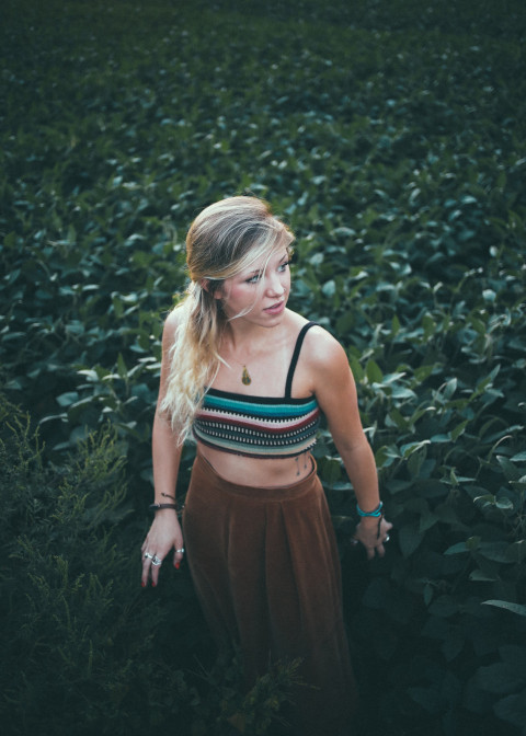 Девушка в коротком топе среди травы
